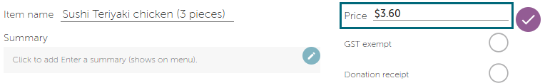 3. Select the item you want to adjust (for example, Sushi Teriyaki Chicken (3 pieces)