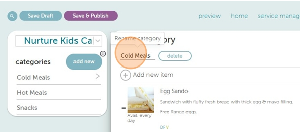 4. Edit the name as needed (for example, change it to Sandwiches)