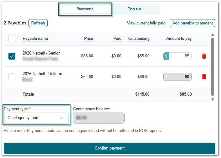 - Payments made via the contingency fund will not appear in POS reports