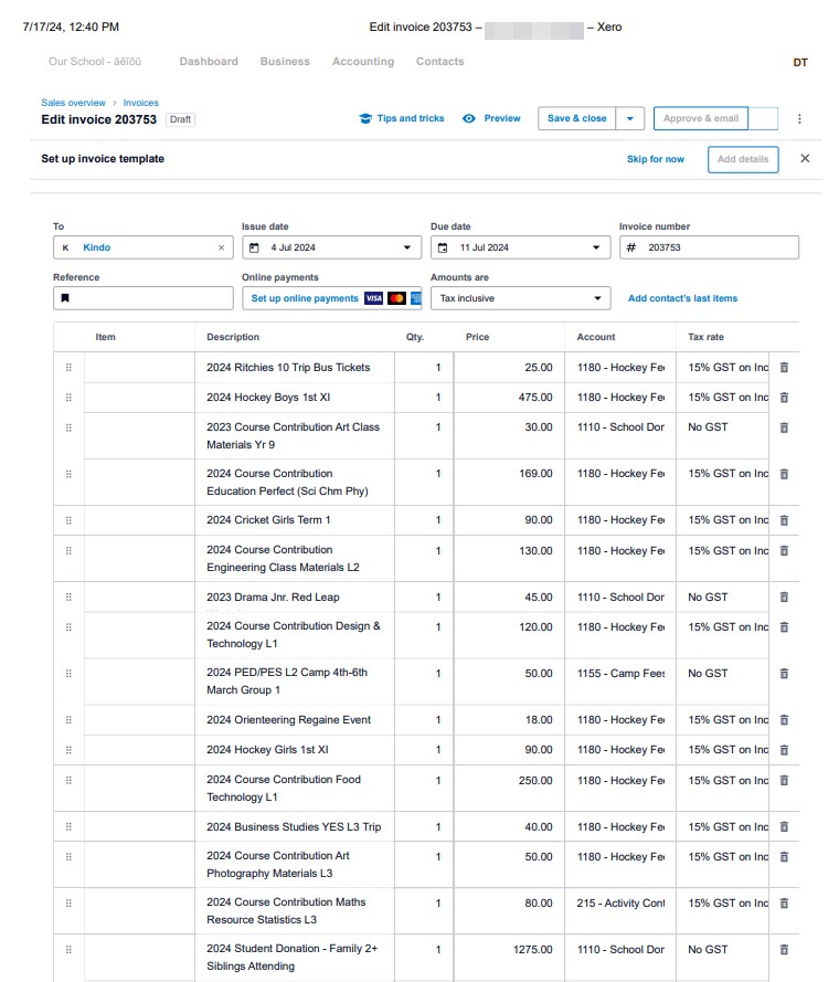 Once the draft invoice has been created, you can open it in Xero to review and approve it.