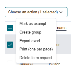 If a student isn't attending an event, isn't part of a team, or doesn't need to complete a form for any reason, mark them as Exempt in Form Status.