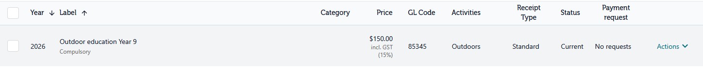 to any payment request items.