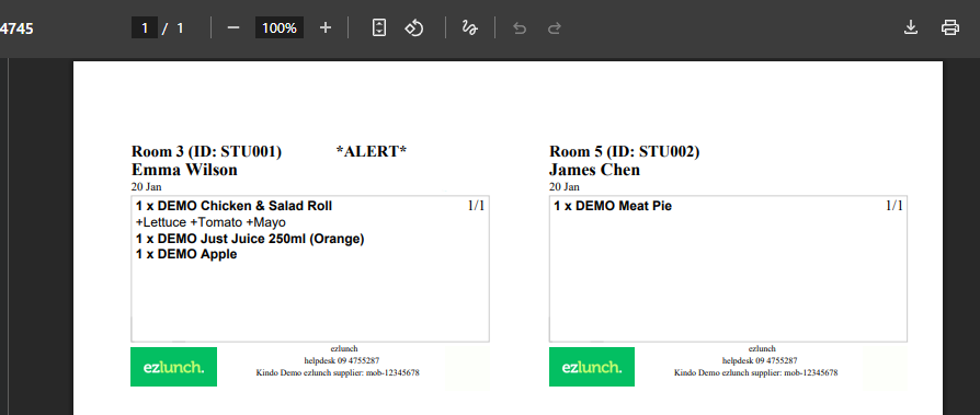 Ezlunch and Kindo provide several label formats to suit different packing and delivery needs. Each format controls how many labels appear per page and how much information is included on each label.