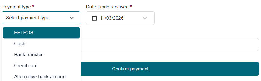 5. Select the Payment type