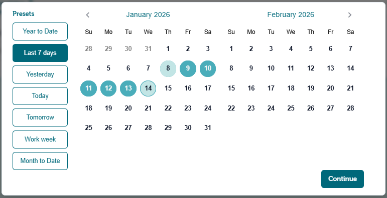 Use the Preset dates to quickly select date(s), or choose a custom range using Select a date range.