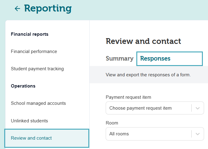 2. In the Reporting menu, under Operations, select Review and contact - Responses.