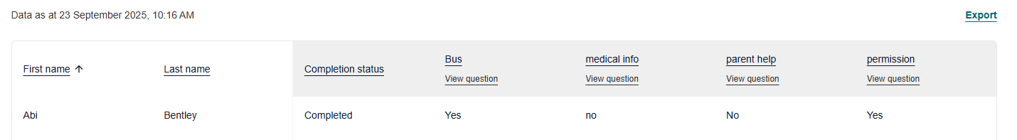 This report provides caregiver responses to questions that have been attached to payment requests, making it easy to check permission, gather trip information, and review special requirements.