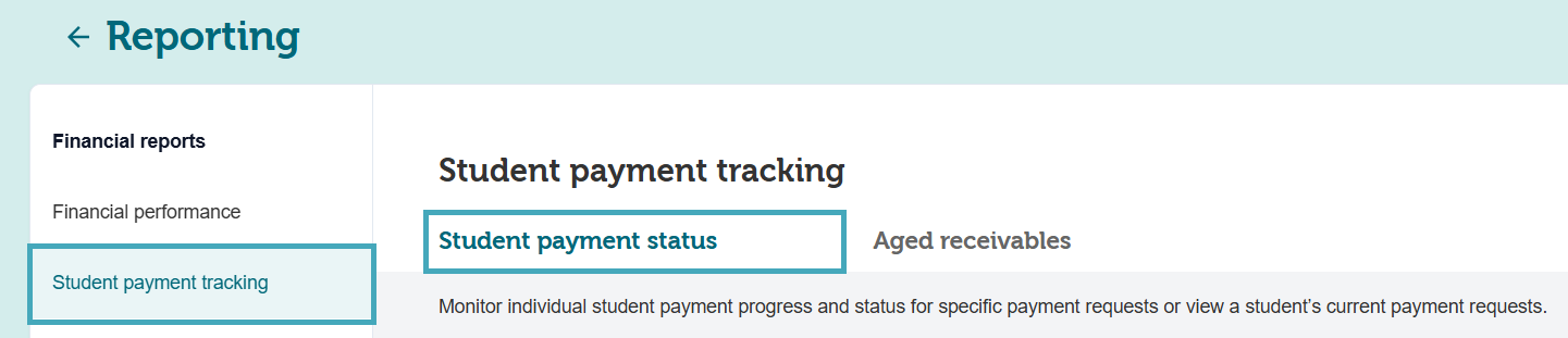2. Choose Student Payment Tracking from the reporting menu and then select Student payment status.